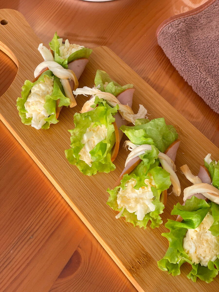 Думаю, уже можно начинать показывать рецепты к новогоднему столу! Первыми покажу эти нарядные рулетики! Закуска очень простая в исполнении, из самых обычных ингредиентов, но какая эффектная и вкусная!!! Ингредиенты: Яйца отварить и натереть на средней тёрке. Сыр натереть на мелкой тёрке. Смешать яйца, сыр, измельчённый чеснок и майонез. Начинку можно приготовить накануне и тогда в сам праздник - потратите всего пару минут на украшение. На кружочек ветчины положить лист салата, яично-сырную массу и связать сыром из косички. Готово! Приятного аппетита! Ниже коротенький видеорецепт))