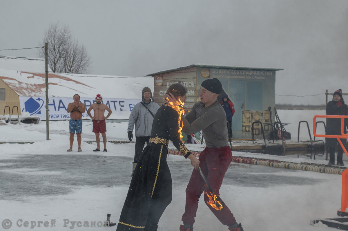 На тюменском озере Чемпионов во время открытия фестиваля Ледяного плавания в минувшее воскресение 11 декабря загорелась файерщица. Во время исполнения трюка «фаер-бризинг» (выдувание огня) участница клуба «Пир огня» Дарья Зевакова пролила на костюм светал (огнеопасную техническую жидкость) и платье загорелась во время выполнения концертного номера (см фото). Партнеры по концертному номеру – силовые атлеты спортклуба Варкаут моментально бросились Дарье на помощь и сбили пламя снегом. Исполнительница закончила номер под овацию зрителей а организаторы фестиваля препроводили героиню в карету скорой медицинской помощи, которая дежурила на спортивном мероприятии. В результате оказания помощи медиками поставлен диагноз ожоги 1-2 степени, с поражением кожного покрова 3 процента организма. От госпитализации артистка отказалась, пожаловавшись мне лишь на сильный стресс от испуга. #файершоу #пирогня #чстюмень