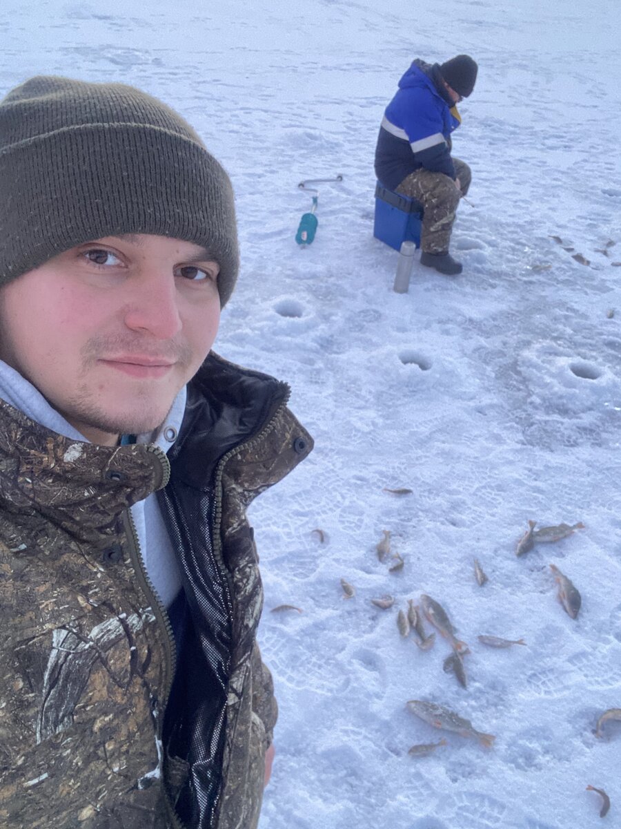 Рыбалка проходила на пруду в самарской области, рыбачил на мормышку зеленого цвета, насаживал по 5 мотылей, окунь клевал не плохо, разбурил не большую акваторию на мели поймали 60 окуней на двоих