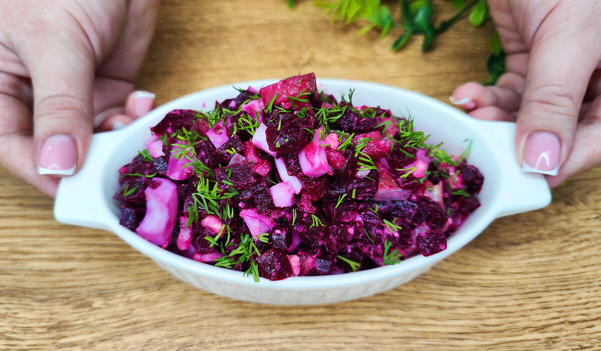 Сочетание свеклы и слабосоленой сельди крайне удачное, салат получается просто бесподобный, отлично подходит на ежедневный или праздничный стол.