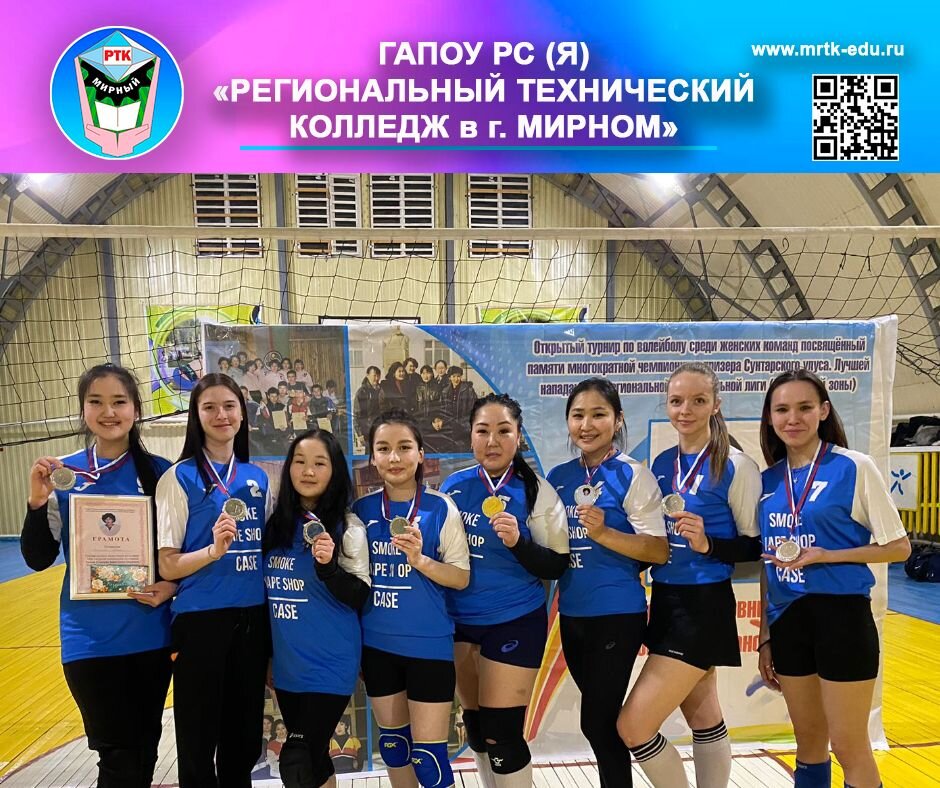 Команда МРТК в числе победителей открытого турнира Сунтарского района по волейболу памяти Тамары Харитоновой (Ивановой). Социальные сети МРТК: подпишись и живи ярко! 10 декабря 2022 г. команда девушек ГАПОУ РС (Я) «Региональный технический колледж в г. Мирном» приняла участие в открытом турнире Сунтарского района по волейболу памяти Тамары Харитоновой (Ивановой) Участниками стали всего 12 команд Мирнинского и Сунтарского улуса. Победителем стала команда Мирный (Мирнинский район), на третьем месте - Сунтаар (Сунтарский улус). Второе почетное место заняла команда ГАПОУ РС (Я) «МРТК» в составе: 1. Валерия Иванова – капитан, преподаватель физической культуры Мирнинского колледжа. 2. Арюна Арьянова (гр. МЦИ-21/9). 3. Марьям Женишбекова (гр. МЦИ-21/9). 4. Вера Эрдыниева (гр. ИСиП-21/9). 5. Лидия Акользина (П-20/9). 6. Анастасия Малычехарова (гр. ИСиП-20/9). Поздравляем наших спортсменок! Данил Иванов, руководитель физического воспитания. Пресс-служба ГАПОУ РС (Я) «Региональный технический ко