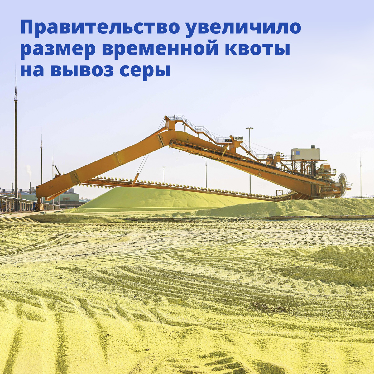 🔺До конца текущего года на 500 тыс. т увеличен размер временной квоты на вывоз серы – с 1,1 до 1,6 млн т.