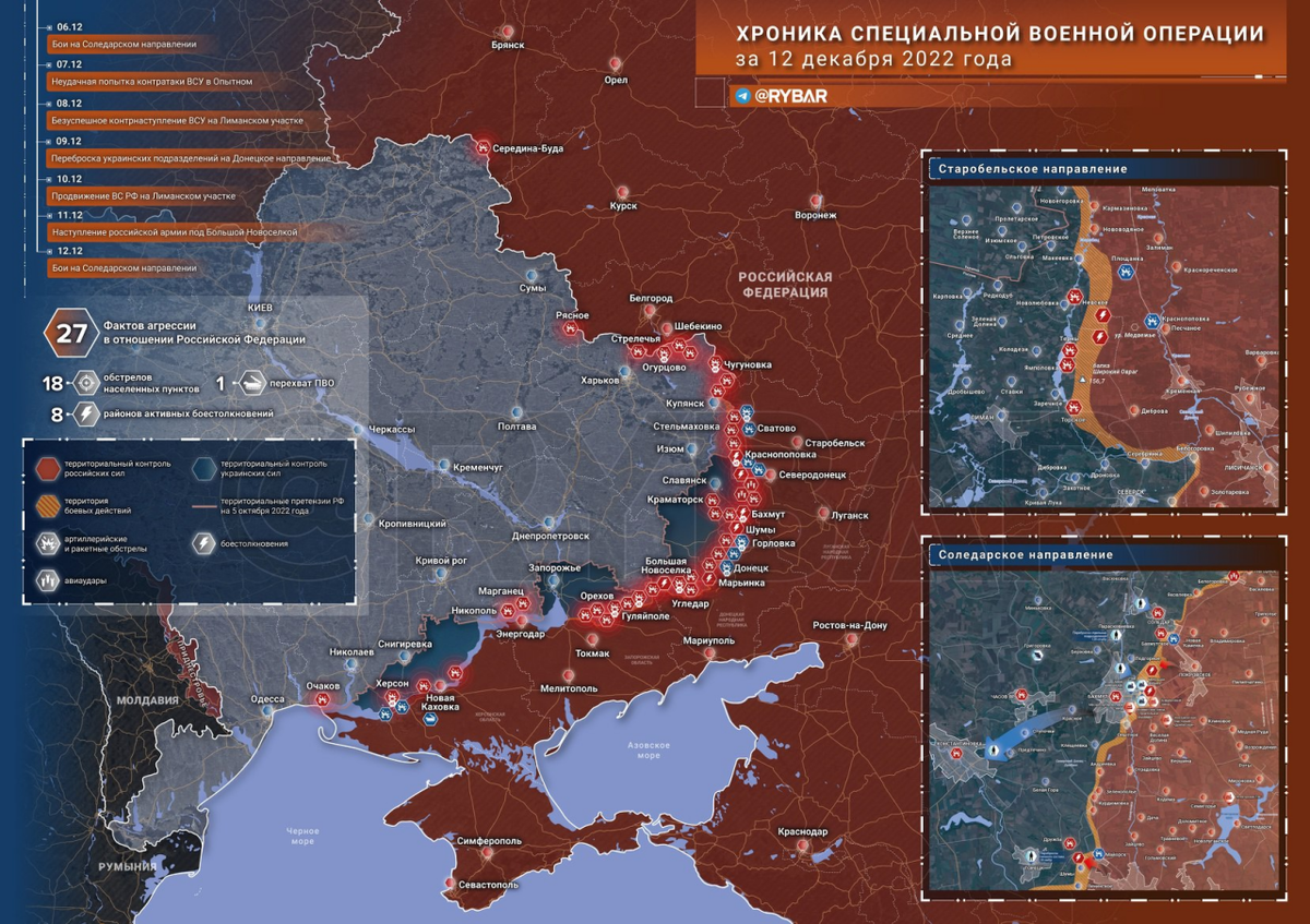 ▪️На Бахмутском (Артемовском) участке продолжаются боестолкновения в окрестностях Бахмута. Штурмовые отряды ЧВК «Вагнер» установили контроль над двумя опорными пунктами противника на рубеже Бахмут — Соледар.
