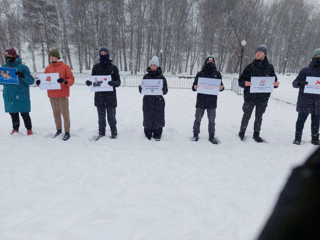 «Жертвы ЕГЭ»: в Перми члены «Молодой гвардии Единой России» вышли на пикет за сохранение русского языка с ошибками на плакатах