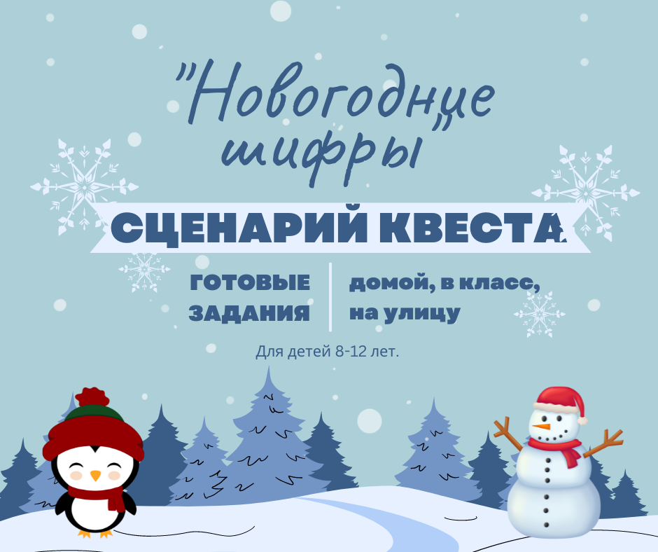 *Набор для самостоятельной распечатки отправляется вам на электронную почту или в мессенджер в виде ссылки на скачивание материалов. После скачивания вам останется только распечатать карточки и спрятать их в тайники. Готовый новогодний квест для детей "Новогодние шифры" - это полностью адаптируемый сценарий. Его можно использовать для проведения новогоднего мероприятия в школе, для поиска новогоднего подарка дома, для весёлой игры на улице... В сценарии квеста в класс "Новогодние шифры" 12 заданий: из них 7 карточек с головоломками, 3 аудиозадания и 2 карточки с активными играми). Стоимость сценария: 300 рублей. В наборе также есть инструкция по подготовке и ответы к заданиям. Подробнее о сценарии новогоднего квеста для детей в класс можно прочитать на нашем сайте: https://printkwest.ru/modulnyj-kwest-na-novyj-god/ Чтобы уточнить детали по сценарию или узнать, как купить готовый сценарий квеста для детей на Новый год, напишите нам в WhatsApp.