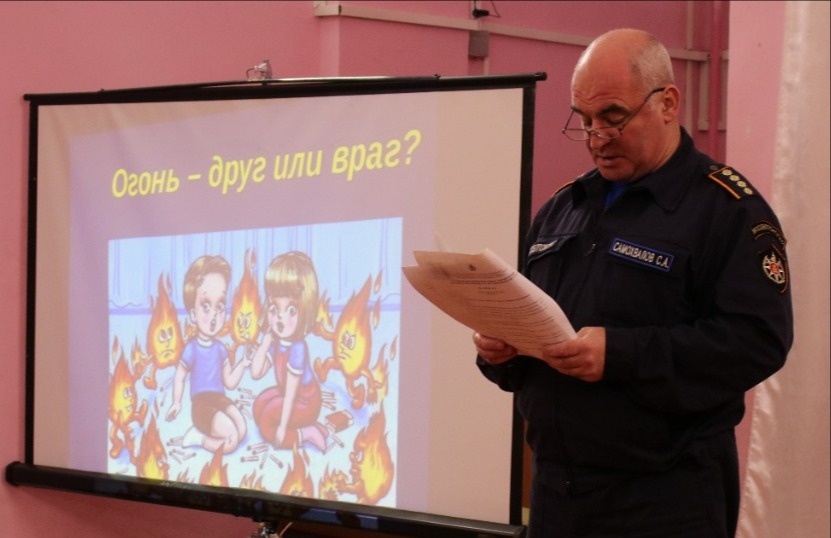 Начальник части Сергей Самохвалов рассказал, что огнеборцы провели с ребятами беседу о правилах пожарной безопасности в быту и поведении в случае пожара.