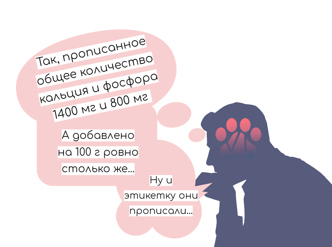 Как Вам добавленные кальций и фосфор, которые соответствуют абсолютному показателю корма на 100 г? 1.4% = 1.4 г, а добавленные 14 г кальция на 1 кг = 1.4 г (1400 мг) на 100 г. Фантастика!
