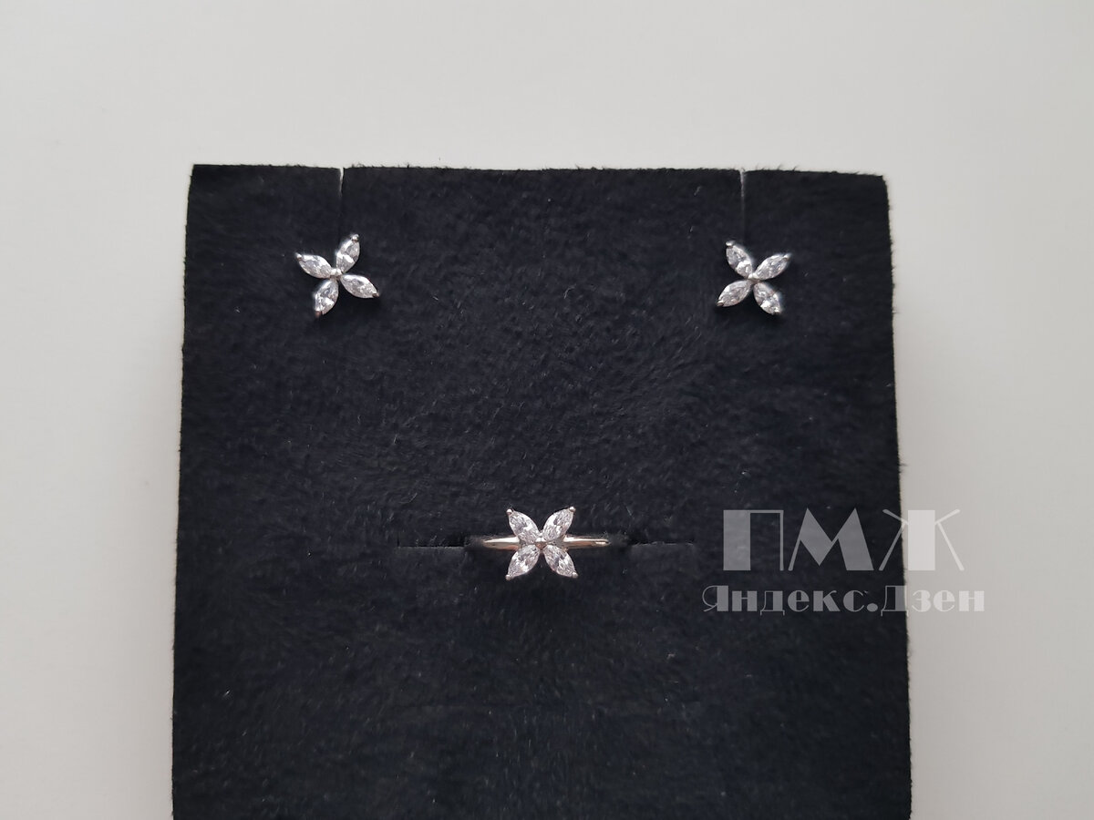 Подоспел первый подарок на Новый год - родственница презентовала очень милый набор. Мне кажется, что он "зимний", напоминает немного снежинки, хотя дарили мне его как набор с цветами. Это серебро с фианитами, производство моего любимого "Соколова". Кольцо максимально простое, правильной формы. Ссылка на него в официальном магазине. На момент написания статьи стоит 890 рублей. Даритель немного ошибся с размером: мне бы больше подошёл 16,5, но мне подарили 16,0. В итоге я могу его носить только на безымянном пальце левой руки - на других некрасиво передавливает кожу. За счёт тонкого ободка фианиты неплохо смотрятся, и мне нравится, что они вытянутой формы, а не круглые. У серёжек точно такой же дизайн вставки и камни. Ссылка на сайт. На момент написания статьи цена 910 рублей. У производителя длина по вставке равна 11 мм, но моя линейка показывает 9 мм. Смотрятся деликатно, в глаза не бросаются. Подойдут как для основных проколов, так и для дополнительных. Я ношу или в качестве основны