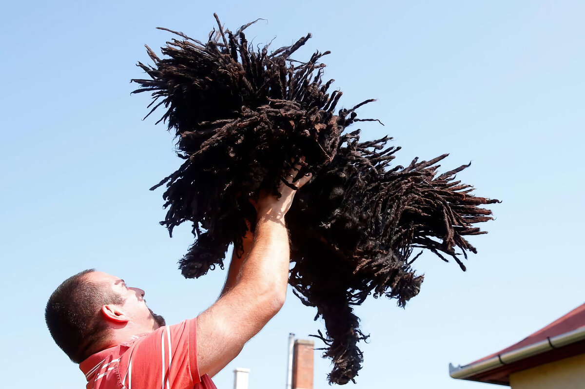 Венгерская овчарка может показаться большой фанаткой ямайской музыки. С такой причёской только регги и слушать! Порода не столь распространённая, как многим бы хотелось. Но уникальность «пули» кроется не только в незаурядной внешности. Пули принадлежит к числу гуртовых пород. Собаке физически плохо, когда вокруг имеются разрозненные «фрагменты пазла». Пасти овец, сгонять скот в стойло и приводить окружающий мир к гармонии. Это суть венгерской овчарки. Как и директор детского лагеря, она способна исполнять несколько ролей одновременно. Воспитатель — с детьми. Компаньон — со взрослыми. Психолог — для всей семьи. Подружейный пёс — для охотника. Завхоз — на личной территории. За многопрофильность владельцы сильно уважают породу. Щенок мало чем похож на взрослую собаку. Шерсть его мягкая, волнистая и совсем не закрученная. К двум годам она удлиняется и образуют дреды. Ближе к пояснице длина увеличивается, доходя до 20-30 см. Густые локоны свисают до земли и не приносят хозяевам радости в д
