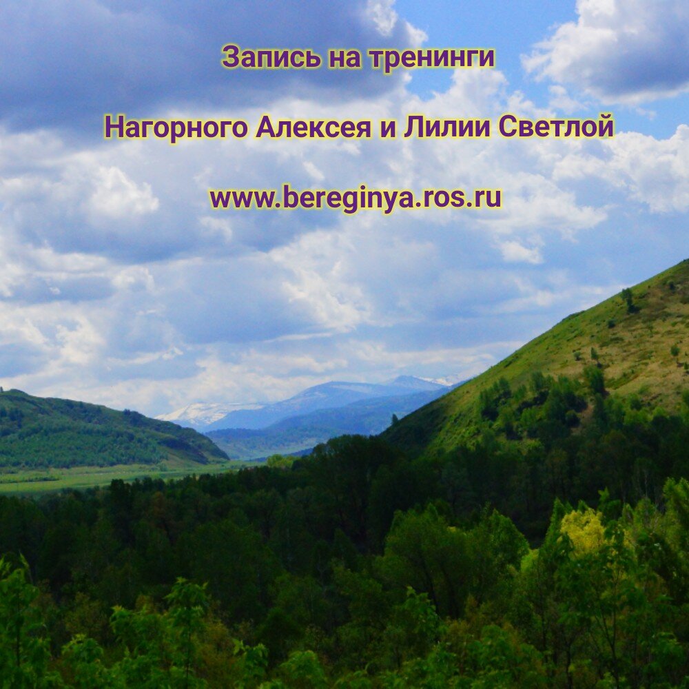 ВЫЕЗДНЫЕ ТРЕНИНГИ Нагорного Алексея и Лилии Светлой В 2023 году 03 Января 2023г. Тренинг "Подари себе жизнь" Место проведения: Алтай «Подари себе жизнь» — это новый авторский тренинг Нагорного Алексея и Лилии Светлой, который даст возможность людям участвующим в нём жить счастливо, созидательно, радостно и в ладу с собой и с Миром. «Подари себе Жизнь» — это тренинг Пробуждения, это тренинг для тех, кто хочет жить здесь и сейчас. Этот тренинг для желающих жить дальше. Этот тренинг для желающего найти то, что мешает ему жить счастливо, а когда найдёт свои жизненные «спотыкачи», то на этом тренинге научится, как их верно и правильно убирать из своей жизни. Этот тренинг для тех людей, которые хотят улучшить свою жизнь, хотят понять, чем им заниматься дальше. 23 Июня 2023г. Тренинг "Звучание Жизни. Род. Место проведения: Алтай Это тренинг, где вы построите