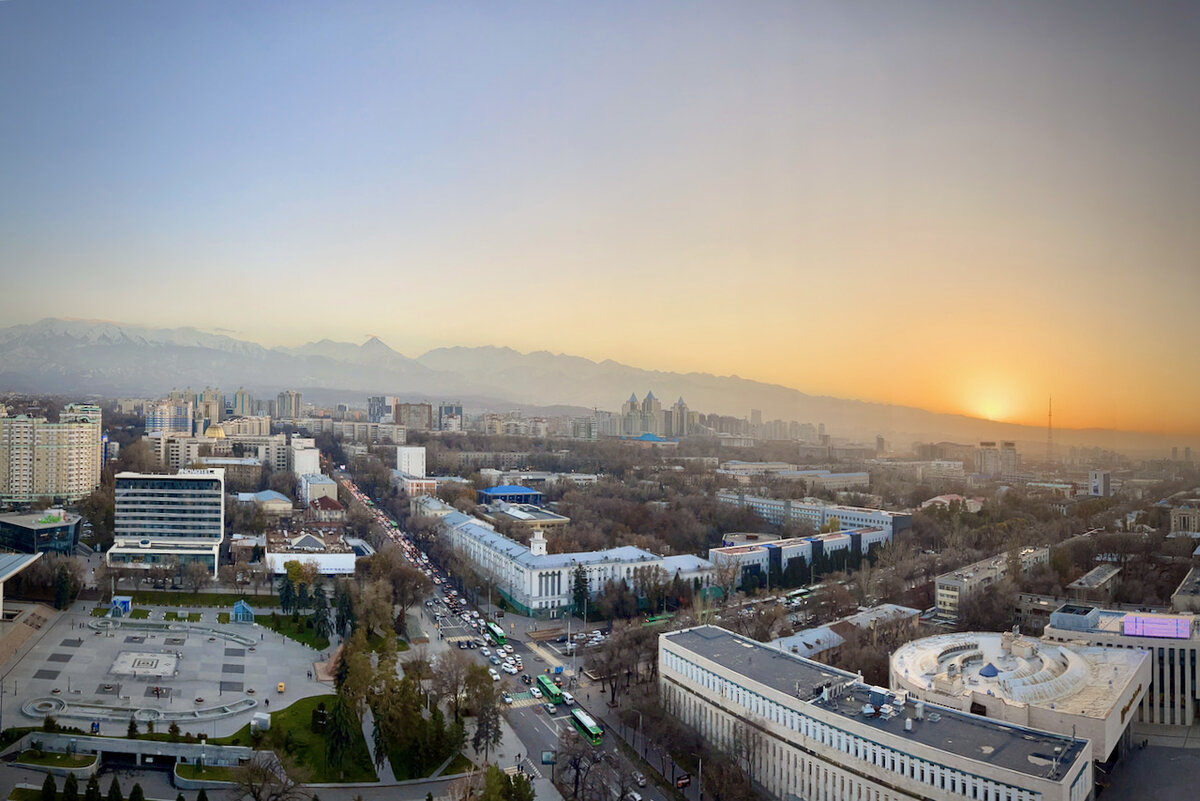 Начну с отеля – гостиница «Казахстан», где я остановился, является самым настоящим памятником советской архитектуры с очень интересной историей. Очень рекомендую, здесь хорошее соотношение «цена-качество» и отличные виды на Алматы.