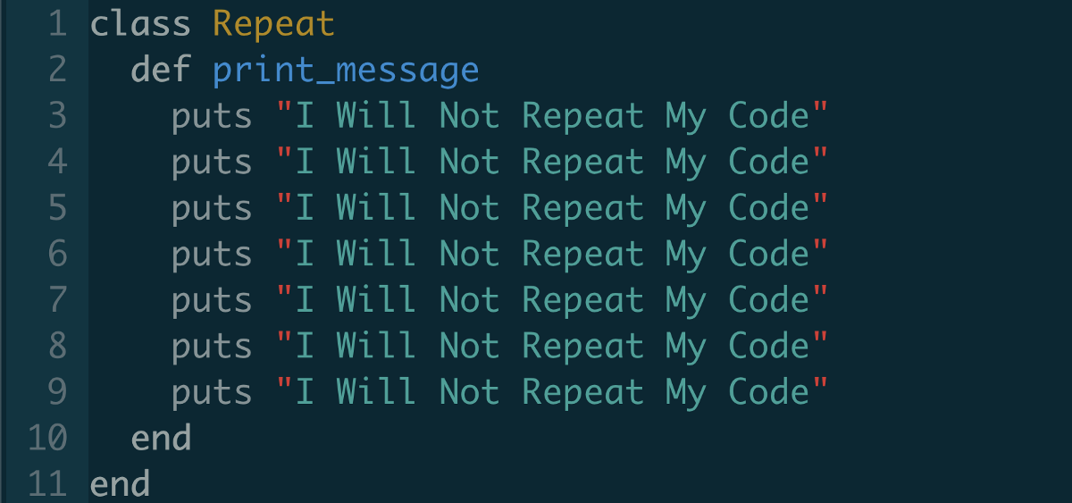 Применительно к коду, примером нарушения принципа может быть банальное копирование одного и того же метода в рамках одного приложения. Например, метод для суммирования двух целых числе, может быть определён в двух разных классах: