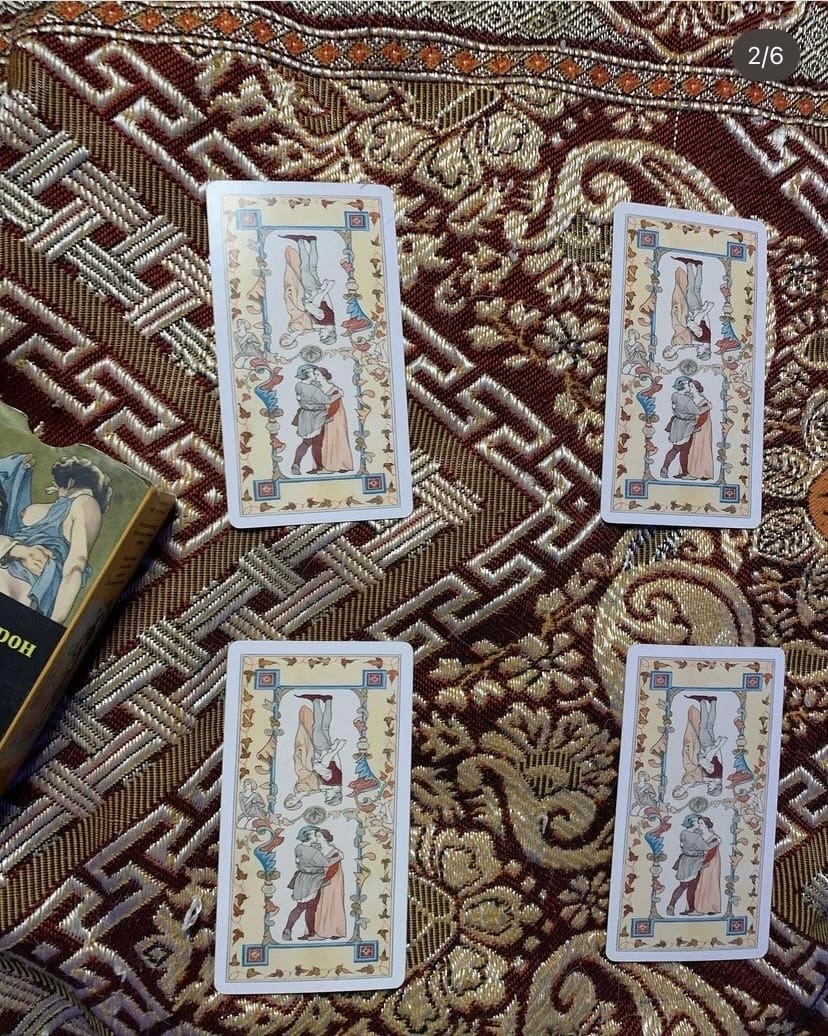 Можно мысленно представить партнера про которого вы бы хотели узнать, закрыть глаза, вдох-вдох и задаем вопрос: "Кто "имя" на самом деле?" и выбираем карту к которой больше тянет из представленных выше.