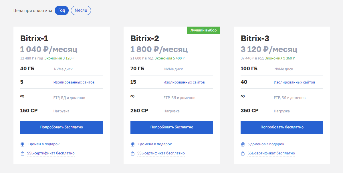 7. Дешевле хостинг. На WP найти стабильный хостинг существенно дешевле, чем на Битрикс. Экономия раза в 3-4. Например, мы работаем с Бегет и тут платим около 2500 рублей (на конец 2022 года) в год, в то время как хостинг для Битрикс стоит уже так (дороже примерно 5 раз):