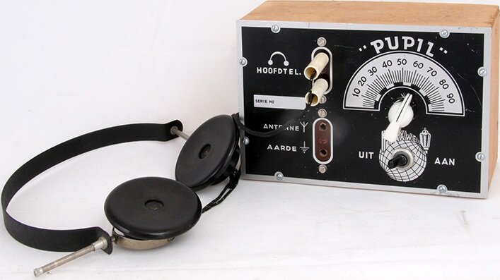 Добрый день дорогие друзья Сегодня мы поговорим и рассмотрим один из самых популярных зарубежный радиоконструктор 50-х годов прошлого века - Maxwell Рuрil. Фирма Maxwell людям моего возраста (мне 65 лет), известна по качественным магнитофонным пленкам. Но вот оказывается в 50-х годов прошлого века она еще и радиоконструкторы выпускала, которые были очень популярны у радиолюбителей. Естественно в оригинале и в хорошем состоянии такой радиоконструктор найти уже невозможно, но голландский радиолюбитель Gеrаrd Jоngblоеd, попытался воссоздать этот радиоприемник из того что ему отдал человек, которому подарила этот радиоконструктор бабушка в 1958 году. когда ему было 14 лет. Давайте посмотрим, что у него из этого получилось. Схема приемника по которой его собирал голландский радиолюбитель Gеrаrd Jоngblоеd А это оригинальная схема. Приемник очень простой собран на одной лампе и имеет батарейное питание. В первую очередь, перед реставрацией приемник был разобран, очищен и отмыт Внутренне с