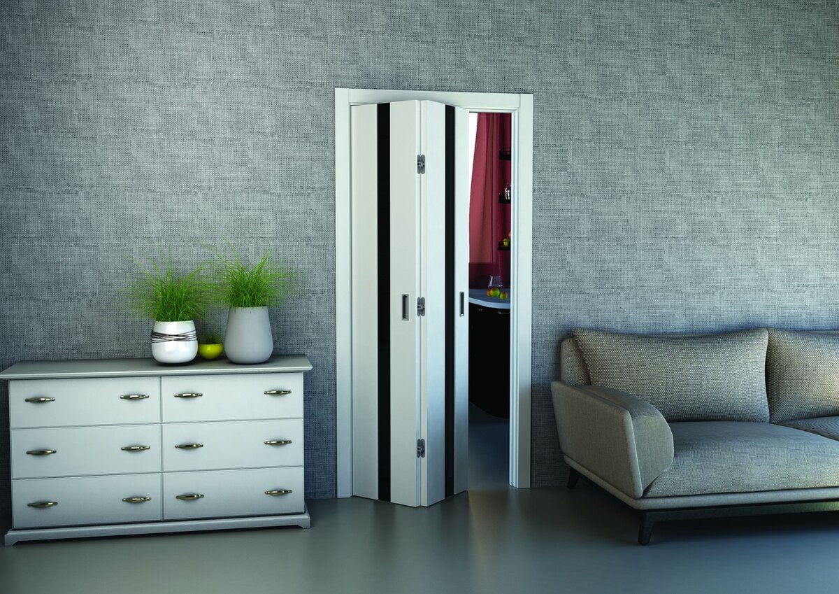 Складные двери станут настоящим подарком для обитателей не самых просторных квартир и скромных по размерам офисов. Они отлично подходят к современным и классическим дизайнам, позволяя совместить практичность, красоту и оригинальность. Описание Дверное полотно таких моделей представляет собой две створки, соединенные петлями. При открывании они складываются пополам, экономя место в коридоре или комнате. Установка роликов и направляющих обеспечивают дополнительную легкость функционирования. Иногда такие привлекательные конструкции называют дверями-ширмами. Использовать складные двери рекомендуют в гардеробных комнатах, кладовках, малогабаритных квартирах или при нехватке места, например, в крошечных прихожих или узких коридорах. Двери-книжки могут быть двухсекционными (идеально подходят для стандартных дверных проемов) или четырехсекционными (украшают собой частные дома с более широкими проемами). Отдельную строчку занимают двери жалюзи, имеющие сходные характеристики, но складывающиеся