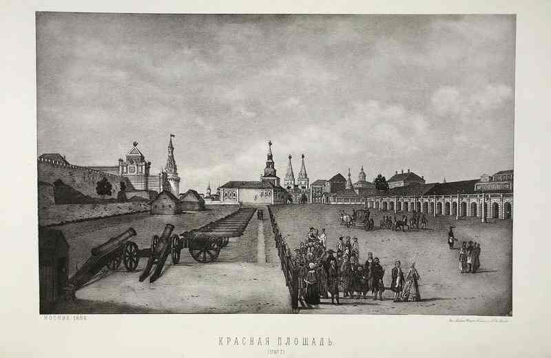 При Екатерине II в торговых рядах на Красной площади сосредоточивалась почти вся розничная и оптовая торговля Москвы. В 1780-х годах передняя часть Верхних рядов со стороны Красной площади получила второй этаж и арочный фасад с десятиколонным портиком. Так в промежутке от Никольской улицы и Ильинкой напротив памятника Минину и Пожарскому теперь стояло длинное двухэтажное здание Верхних торговых рядов, позади которого теснилось множество небольших деревянных лавчонок.
