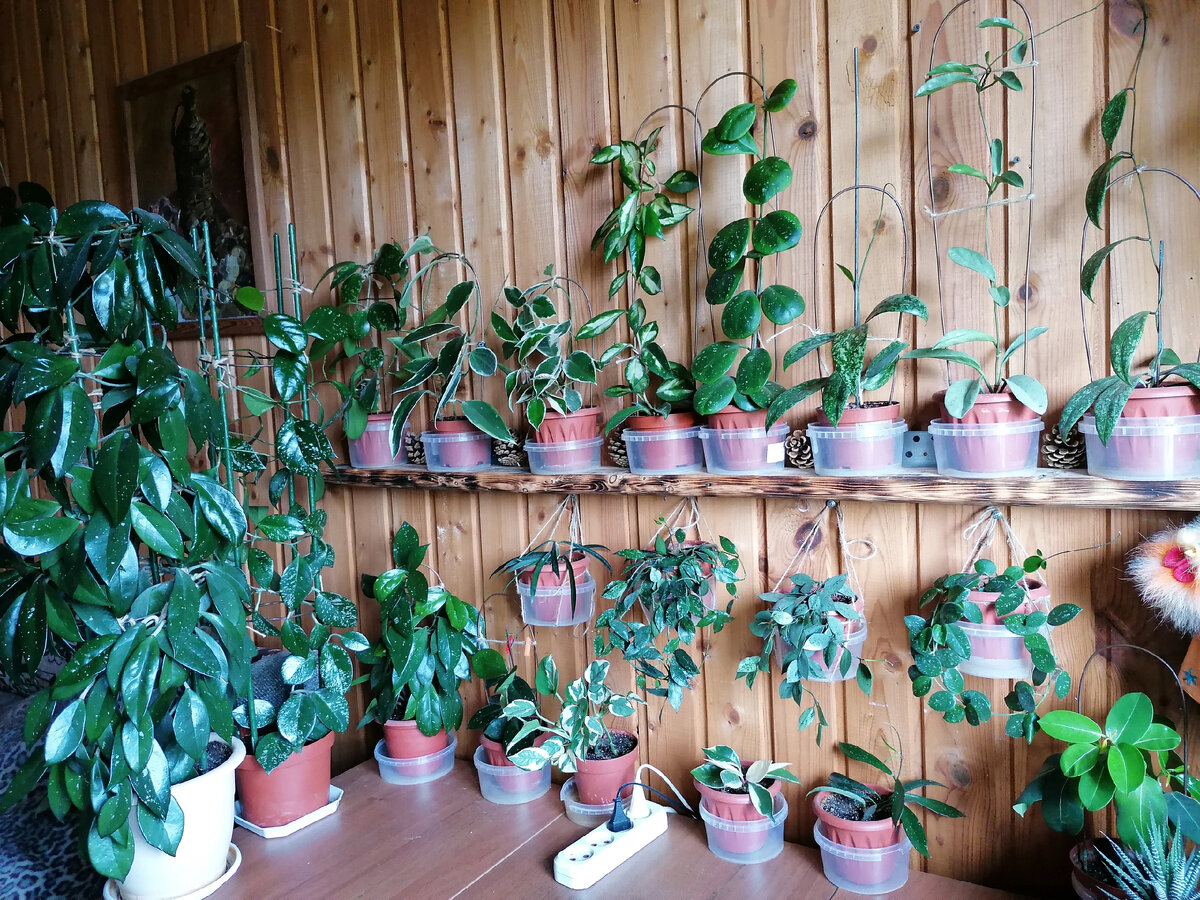 Попался мне сейчас на глаза давно забытый альбомчик с фотографиями моих домашних ратений разных лет. Названия сортов я здесь обозначать не буду, если кому интересно, то очень подробно всё описано в старых статьях про мои коллекции домашних растений . Весь опыт, фото и видео в этих статьях - мои: А дальше будет много фотографий. Люблю я, когда всё дома зелёное. Особенно, если зима на дворе, и в окошке ничего зелёного нет. А дома - жизнь! На даче у нас двенадцать подоконников в доме и большая терраса, которая вообще - вся сплошной подоконник. И в Москве окна с южной стороны, которые также заняты горшочками. Все фотографии в этой статье мои, каждую отдельно подписывать некогда. Это, например, молоденькие восковые плющи - Хойи. Детский садик : На улице зима, солнечный день. В спальне всё зелёное: А это старая Хойя Карноза слева. И в середине любимый фикус Мелани: Хойи сортовые, укореняшки: Всякие молоденькие бегонии : Почти всю свою коллекцию я не покупала, а вырастила из листочк