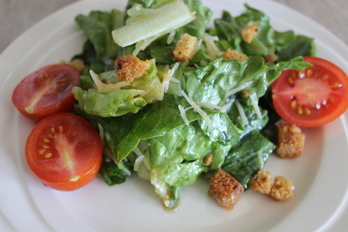 2 ст.л. тертого пармезана (и только пармезана!) 1. Салат романо вымыть, обсушить, порвать руками, сбрызнуть оливковым маслом и аккуратно пе