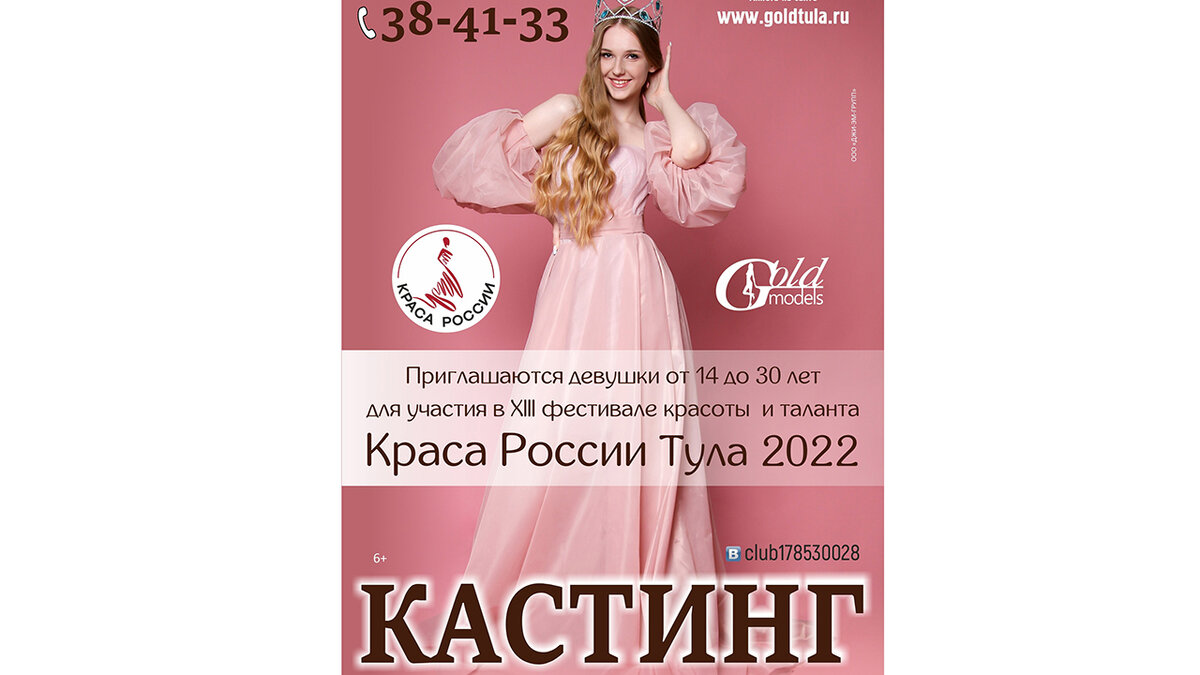 В субботу, 17 декабря, в 14:00 в Туле пройдет отборочный кастинг на XIII Ежегодный Областной фестиваль красоты и таланта «Краса России Тула 2023». Тулячки могут принять участие в возрасте от 16 до 30 лет. Та, что одержит победу будет представлять Тульскую область в финале национального фестиваля «Краса России 2023». Победительнице вручается уникальная корона, которая не имеет аналогов и эксклюзивная лента, украшенная кристаллами Swarovski. Чтобы принять участие, девушки должны заполнить анкету на кастинг или записаться по телефону 38-41-33, 8 (903) 840-41-33.