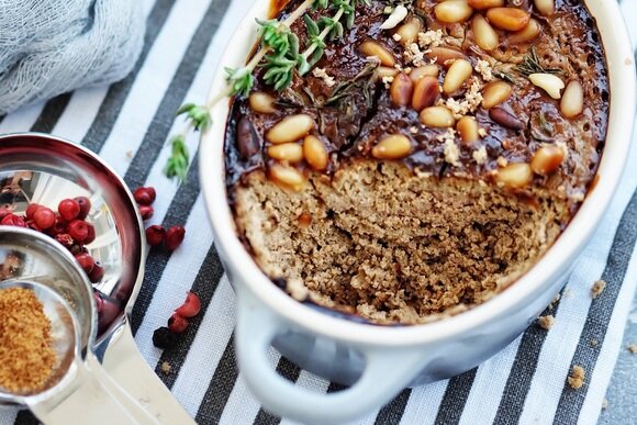 Заготовка для паштета может стать основой еще одного блюда — террина. Это мясной деликатес, запеченный в продольной форме. По очертаниям он напоминает небольшую буханку черного хлеба. Здесь как раз смесь из свиного фарша и печени, куриного яйца и сливок заливают именно в такую посуду.