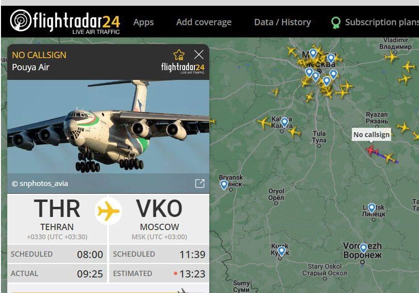 Иранский транспортный самолет Ил-76 с неизвестным грузом на борту заходит на посадку в один из московских аэропортов.