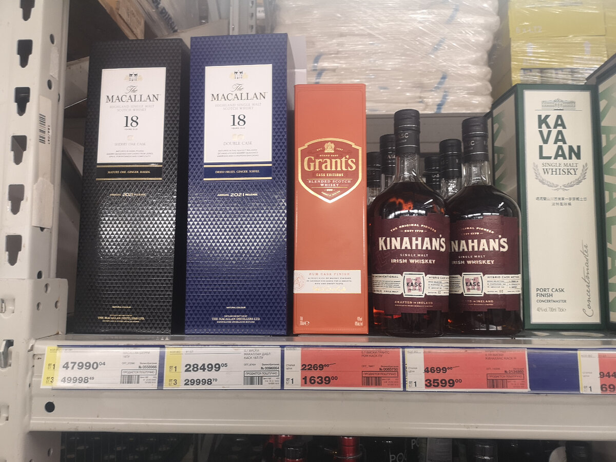 Приветствую всех любителей интересных алкогольных напитков на своем канале! Ну вот кажется и счастье привалило, пришла заветная смс и письмо на почту от Метро - скидка до -40% на виски. И я полный энтузиазма и веры в деда мороза уже мчу в магазин закупаться по полной. Пока ехал, вспоминал чудо распродажу 2020 года, не так давно про нее делал статью, можете сравнить цены здесь. И вот я забегаю в магазин, и мчу с тележкой к заветным полкам и вот что я там вижу: Макалланы видимо стоят чисто поржать, т.к. другого их назначения я думаю нет. Ну не знаю я адекватного человека, который за 48 тысяч будет брать 18 летний Мак. Есть остатки Базового Кавалана по не очень демократичной цене и от куда не возьмись появился Green Spot. Очень бы хотелось его попробовать, но 10 тысяч по акции считаю все равно перебор. Jim Beam еще остался, цена раньше по акции была 1400-1600, сейчас 2 тысячи. Если сильно хочется то можно взять, интереснее белого. Pogues цены относительно приемлемые, но виски конечно на л