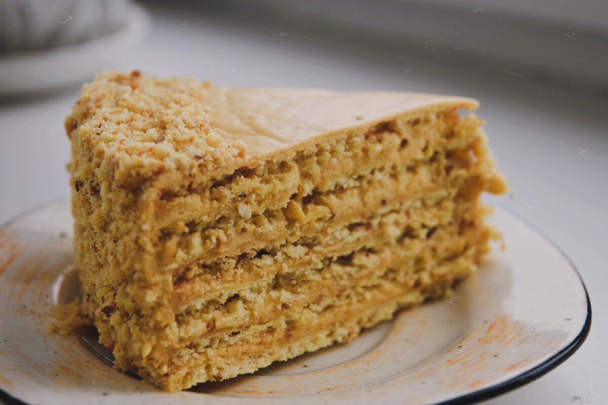 Здравствуйте, вчера захотелось приготовить торт для утреннего чаепития, чтобы порадовать свою семью. Рецепт очень простой, вкус такой понятный и знакомый с детства. Торт по вкусу очень похож на популярную когда-то конфету "Коровка". Игредиенты: Для коржей: Крем: Приготовление: 1) Арахис обжариваем на сухой сковороде. Даём остыть. 2) Затем измельчаем в блендере. 3) Масло комнатной температуры + сахар - хорошо взбиваем миксером на максимальной скорости. 4) Добавляем яйца и ещё раз перемешиваем. 5) Муку + разрыхлитель - перемешиваем венчиком и соединяем с яично- масляной смесью и арахисом. 6) Затем вымешиваем тесто примерно 5 минут. 7) Формируем колбаску и упаковываем тесто в пищевую плёнку. Убираем в холодильник на час. 8) Делим тесто на 6 частей. Раскатываем каждый кусочек нужным диаметром. Удобнее всего это делать с помощью рулона пищевой плёнки на силиконовом коврике. Не забываем припылить поверхность и тесто мукой. 9) Отправляем каждый корж в духовку примерно на 7 минут