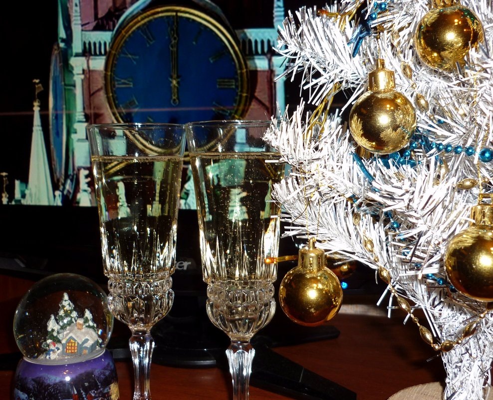 Празднование начинается примерно в 11 часов вечера, когда семья садиться за праздничный ужин. Незадолго до 12 часов произносится тост за «старый, уходящий год», в котором отдается дань уважения тем добрым вещам, которые он принес. В России принято слушать выступления главы государства по телевидению и радио. Президент традиционно подводит итоги прошедшего года и поздравляет граждан России с Новым годом по всем телеканалам.