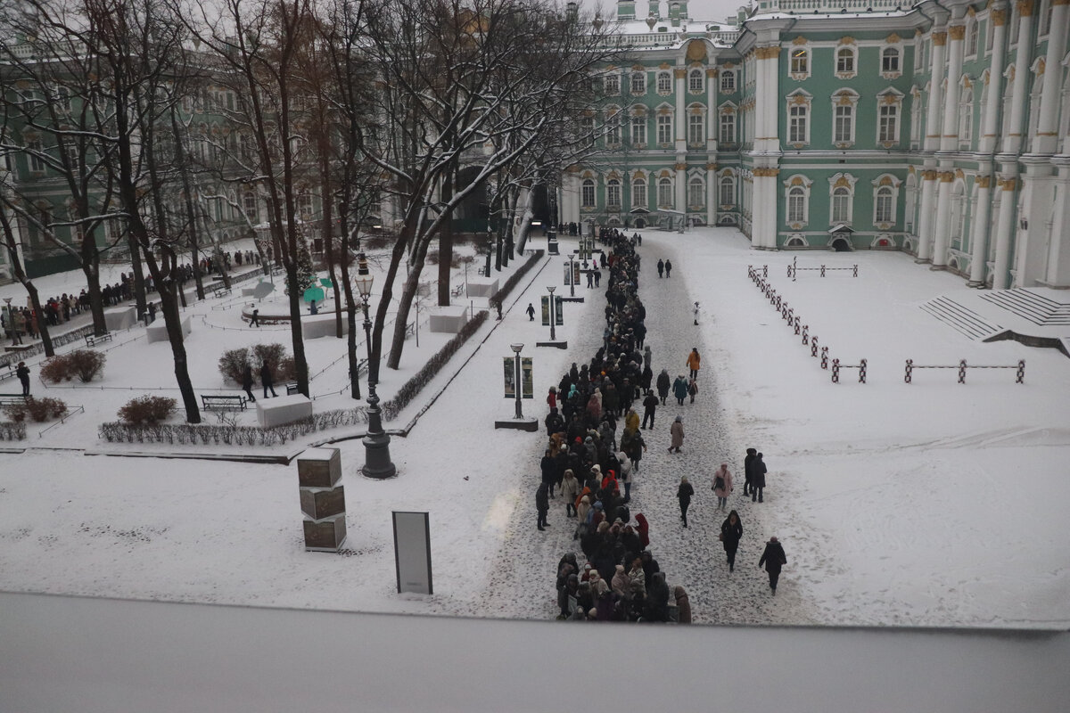 7 декабря 2022 года Государственный Эрмитаж праздновал День Святой Екатерины, в честь которой при крещении была названа императрица Екатерина Великая – основательница и покровительница музея. В честь этой даты посещение музея было заранее объявлено бесплатны. По билету, который можно было купить (вернее зарегистрировать, так как он бесплатный) на определенный сеанс и по едином билету еще можно было сходить и в здание Главного штаба.