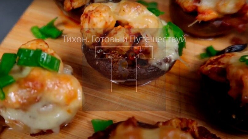 Тёплая закуска из грибов, сыра и курицы — отличное украшение праздничного стола! Теплые тарталетки из шампиньонов с куриной грудкой и под сырной шапкой — это простая и вкусная идея закуски. Тарталетки из шампиньонов станут великолепным украшением стола на праздник или Новый год. Запеченные в духовке грибы с пряной ароматной курочкой. Вкуснятина! Так что еще нужно для счастья?) Для приготовления вам понадобятся: — Шампиньоны — 8-10 шт — сыр — 100г — куриная грудка, 200г — ¼ луковицы — соль — перец — чеснок — паприка Способ приготовления: Первым делом у шампиньонов вырезаем маленьким ножом ножки. Так мы придадим грибам форму тарталеток. Потом мы укладываем в смазанную маслом форму для запекания наши будущие тарталетки. А ножки шампиньонов мы измельчаем. Они нужны для начинки. Я нарезаю ножки мелким кубиком. К начинке добавляем ¼ луковицы. И куриную грудку. Кусочки в начинке старайтесь нарезать примерно одного размера. Небольшое количество масла наливаем на сковороду. Ждем, когда разогрее