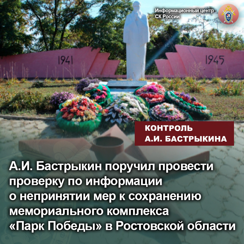А.И. Бастрыкин поручил провести проверку по информации о непринятии мер к сохранению мемориального комплекса «Парк Победы» в Ростовской области