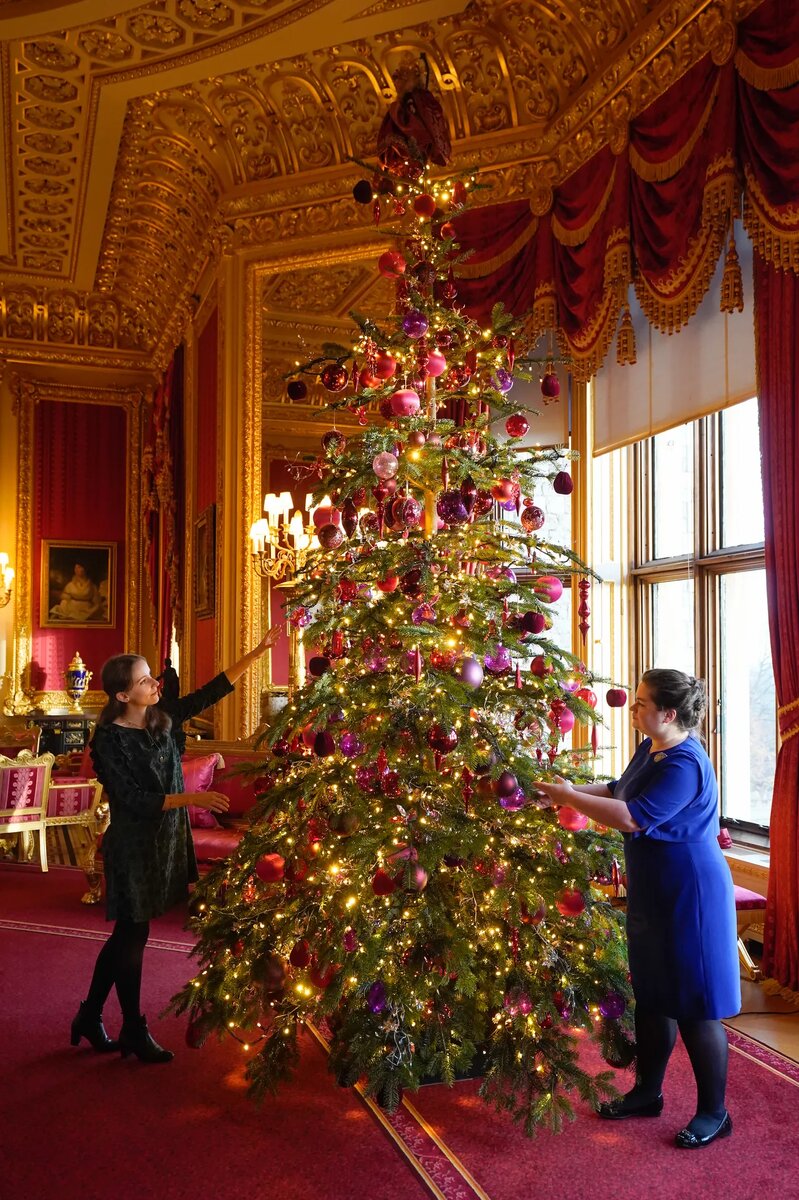 Вндзорский замок, где королева Елизавета II провела последний год своей жизни, готовится встретить свое первое Рождество без нее. Несколько дней королевские помощники – сотрудники The Royal Collection Trust - украшали залы, елки, нанизывали гирлянды и сооружали композиции, чтобы все посетители Виндзорского замка могли окунуться в Рождественскую сказку. В Багровой гостиной воцарилась высокая ель, украшенная розовыми и фиолетовыми игрушками, мерцающими гирляндами и традиционным ангелом. Парадная лестница декорирована пушистой гирляндой и венками. Столы в Зале Ватерлоо украшены лиственными композициями с золотыми шарами и предметами декора из Королевской коллекции. В Георгиевском зале – рождественском «сердце» Виндзора – установлена 20-футовая (больше 6 метров) пихта Нордмана, взятая из Большого Виндзорского парка и украшенная сотнями мерцающих огней и елочных украшений в классическом стиле. Когда-то давно именно в Виндорском замке королевская семья любила встречать Рождество. Это и