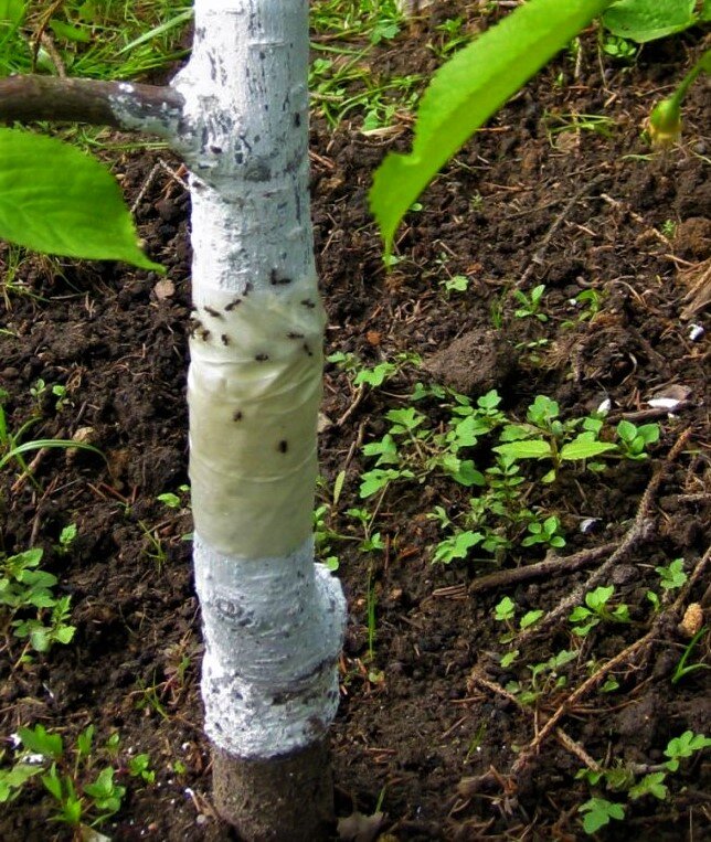 Первый метод использует мой свекор, и его яблоня всегда усыпана сочными плодами без повреждений от червяков. Он берет 2 небольших куска мешковины – шириной где-то 20 см. Оборачивает ствол в два слоя вверху и внизу. Сверху мешковины полиэтиленовую пленку так, чтобы она не закрывала края ткани где-то на 5 сантиметров. Затем на пленку наносил солидол. Такой «пояс» он накладывает ранней весной, обновляет раз в месяц. А полностью снимает в августе, когда уже урожай созрел. Очень действенный метод! Три года назад мы себе тоже посадили яблоню. И два года получаем урожай без повреждений. Сейчас такие ловчие пояса можно купить готовые. А очень люблю фирмы Аргус. Второй метод рассказала подруга. Она выкапывает небольшую канавку вокруг яблони. Из пленки делает «юбку». Концы ее склеивает клеем. Нижняя часть «юбки» укладывается в канавку, края поднимает проволокой, а верхняя завязывается на стволе. В канавку наливает воду с Топазом или Фундазолом. Получается небольшой ров, через который вредители н