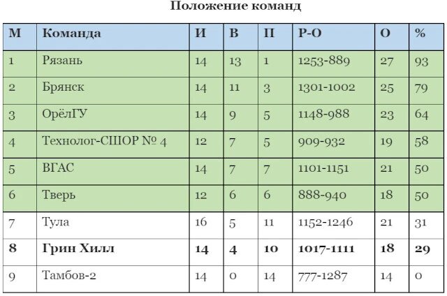 Белгородская команда «Технолог-СШОР № 4» в Липецк на матчи чемпионата ЦФО с «Грин Хиллом» прибыла молодёжным составом, оставив дома несколько опытных баскетболистов. Но задачу-минимум выполнила, добившись одной победы в двух матчах. Липчане также играли без ветеранов, за исключением разыгрывающего Михаила Чешуева. В первый день «Грин Хилл» превосходил белгородцев в большинстве компонентов, прежде всего в точности, и победил – 90:78. В первой половине матча шла равная борьба, и на большой перерыв гости даже ушли, ведя в счёте – 37:38. Перелом наступил лишь в заключительной четверти. В самом её начале благодаря трём дальним попаданиям кряду (начало мини-серии положил Григорий Рулёв, продолжил двумя «трёхами» Владислав Кузнецов) липчане ушли в отрыв – 63:53. В дальнейшем, как ни старались белгородцы, изменить ситуацию они оказались не в силах. В этот день «Грин Хилл» атаковал из-за дуги с приличным процентом точности (50), реализовав 12 попыток из 24. Кузнецов принёс команде 36 очков, Чеш