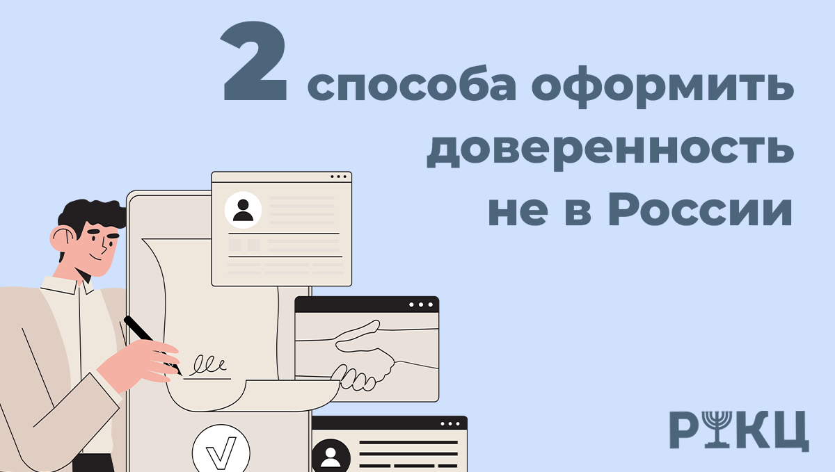 Вы уехали в Израиль и решили уже там пройти репатриацию. Консул внезапно попросил документы, которых у вас нет на руках, а получить их можно только в России. Идеально, если вы оформили перед отъездом доверенность на человека, который сможет вести ваши дела. Это нужно не только для документов. Например, по генеральной доверенности можно продавать недвижимость, бизнес, взаимодействовать с банками и госорганами. Но что делать, если вы уже раскладываете вещи в новых апартаментах Тель-Авива, а вернуться в Россию нельзя? Есть 2 способа оформить доверенность, находясь в Израиле. Способ 1. У израильского нотариуса Если нотариус не говорит по-русски, доверенность нужно составить на английском или иврите и заверить подпись. Затем сделать перевод, ведь доверенность нужна на русском языке. Желательно оформить апостиль. Это быстрый, но не самый дешевый способ. Способ 2. В посольстве РФ Все довольно просто, но придется дождаться своей очереди на прием. Главное преимущество консульской доверенности —