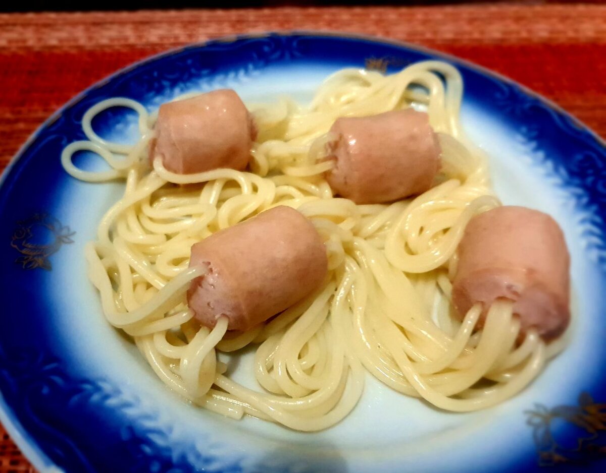 Всем привет! Сегодня приготовим очень интересное блюдо. Оно рассчитано в первую очередь на детей, но, уверяю вас, взрослые очень даже не против скушать это прикольное блюдо. 🗒Ингредиенты: 🧑🍳Приготовление: 1. Сосиски должны быть высшего сорта, чтобы блюдо получилось вкусным. Очищаем их от кожицы и нарезаем на 2 -3 части. 2. Тоненькие спагетти аккуратно вставляем в кусочек сосиски вдоль. Стараемся проткнуть 8-10 палочек. 3. В кипящую подсоленную воду в кастрюле (регулируем соль в соответствии с соленостью сосисок) отправляем заготовки. 4. Окунаем «осьминожки» одной стороной в кипяток и ждем, когда макароны станут мягкими.Тогда «осьминожки» окунаем полностью в воду и даем покипеть 10-15 минут. 5. Готовые сосиски достаем из воды, подаем со сливочным маслом, а можно и с соусом. 6. Готовим соус. В растительном масле обжариваем мелко нарезанный лук, добавляем измельченные помидоры или томатную пасту, затем мелко нарезанный или выдавленный прессом чеснок. Добавляем любимые специи, соль, пе