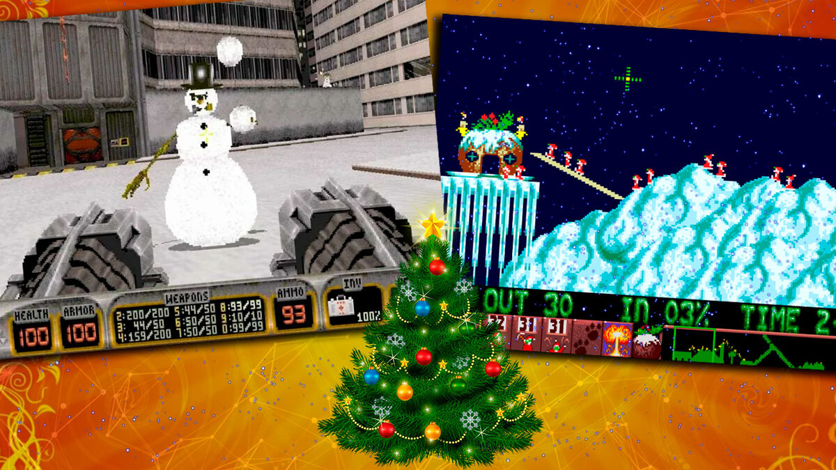 Всем привет. Близится конец года. Многие уже нарядили красивые новогодние ёлки и готовятся к празднованию Нового года. И сегодня мне хотелось бы вспомнить старые-добрые игры, которые поднимали мне новогоднее настроение. Duke Nyukem 3D: Nuclear Winter Конечно же, трудно найти геймера 90-х, которой хотя бы раз в жизни не видел культовую игру "Duke Nyukem 3D". Но многие спросят: "Причем здесь Дюк Нюкем и Новый год?". Естественно, оригинальная игра никак с Новым годом и Рождеством не связана, но к ней выходило три глобальных тематических дополнения, одно из которых носило название "Nuclear winter". По сюжету игры Дюк уже готовился праздновать Рождество, когда получил письмо о том, что инопланетяне похитили Санта-Клауса, промыли ему мозги и хотят с помощью него воплотить в жизнь свои злодейские планы. И теперь старине Дюку предстоит сражаться со снеговиками (в том числе и на танках), с рождественскими эльфами, монстрами, окутанными гирляндами и одетыми в красную шубу и шапки Санты-Клауса,