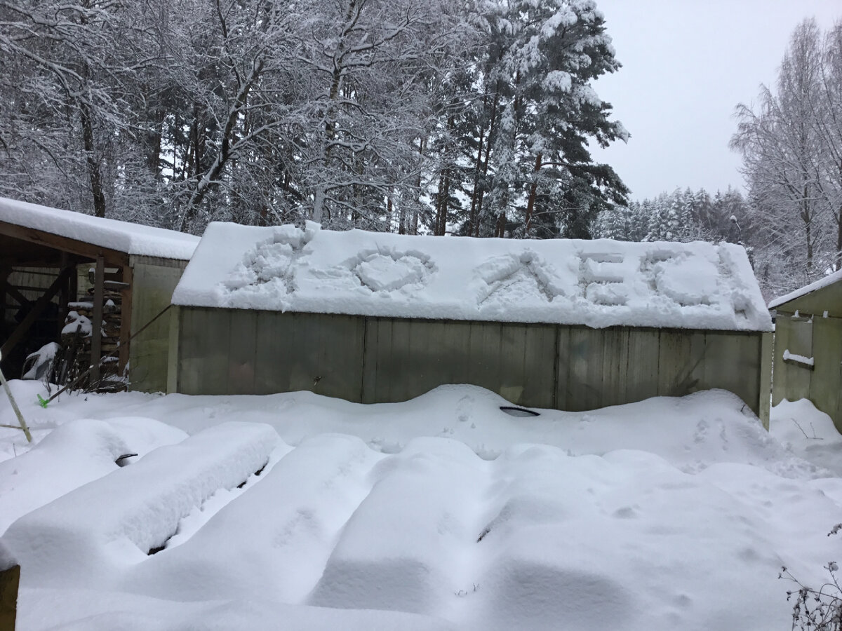После снегопада пришла оттепель, и мне удалось под ливнем откопать калитку в лес! А снега там и не так много, но вот что снегопад делает с соснами Под тяжестью снега ветки ломаются, как спички. Собирала эти ветки и таскала к себе. Уже не играю в угадайку, просто говорю: кроликам! Кролики едят хвою и тонкие ветки, как мы едим витаминные салатики! И это дело нельзя оставлять на завтра. Потому что завтра началось со снегопада! И опять лес снежный и прекрасный! Особенно в лучах зимнего солнышка! А от надписи на теплице и следа почти не осталось! Но я все равно люблю лес! Доброго всем вечера!