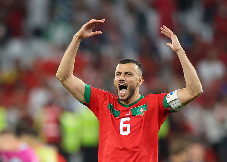Важная часть феномена Марокко на ЧМ-2022 – защитник и капитан Ромен Саисс. Он лидер по количеству матчей за сборную и фундамент обороны: за пять игр команда пропустила только один автогол с Канадой. Просто осознайте: ноль пропущенных против Хорватии, Бельгии, Испании и Португалии.
