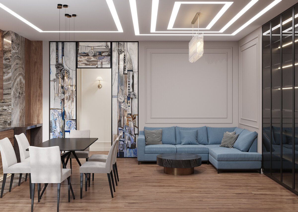 Использование витража в современных интерьерах зачастую вызывает неоднозначное мнение. Для многих витраж – это украшение, которое уместно выглядит в старинных замках, соборах и т.д. Другими словами, это вид декор из прошлого и представить его в современном интерьере сложно. Однако, это не так. Витражи не только многофункциональны, так как они визуально могут увеличить пространство, но и выступают как самостоятельный элемент декора, привлекающий внимание и позволяющий создать по-настоящему уникальное пространство. Многое зависит от узора, который вы выберете для витража. Если это элементы современной живописи, геометрические фигуры, орнамент, то и интерьер будет выглядеть современным. Второе распространенное заблуждение – витражи выглядят красиво только в сочетании с деревом. На самом деле они отлично сочетаются с металлом, пластиком, керамогранитом и т.д. Область применения витражей обширна.