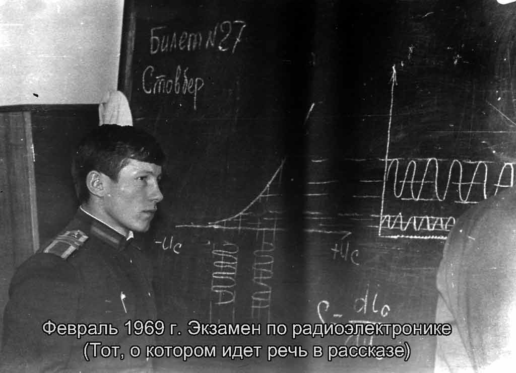 Пословица Хочу поведать младшим выпускникам училища, а первому выпуску напомнить историю, которая случилась в феврале 1969 г. на третьем семестре. Мы сдавали экзамены перед полетами. УЛО находилось тогда в двухэтажном здании на краю плаца (на четвертом курсе мы там жили). Так вот, подошло время сдавать экзамен по радиоэлектронике. 100 часов прочитано – скоро на ковер. В голове – полный винегрет, в отпуск ехать надо, а как быть? Видя неутешительные оценки первых сдававших К/О, проанализировав обстановку и порядок сдачи экзамена, инициативная группа 6 К/О приняла решение – учитывая, что билеты на экзамены – вещь const, а номера билетов экзаменатор пишет карандашом каждый раз новые, мы решили это дело «исправить». В глубокой тайне было принято «мудрое» решение. Напечатать полностью билеты, раздать ка