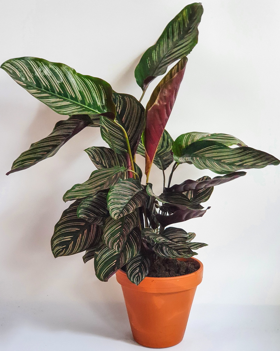 Разновидностей калатеи очень много. Каждый может найти «свой» цветок, а многие даже коллекционируют калатеи. Но стоит учитывать, что эта красавица настоящая капризуля, в уходе, калатея, как истинная дама с характером. Она отсушивает листья, сворачивает их в трубочки и печально свешивает, покрывается пятнами и всякими другими способами показывает, насколько она недовольно вашим поведением. Калатею также называют «молитвенным цветком». получила за интересное прозвище из за поведения листьев. Утром они поднимаются вверх, а вечером опущены вниз, , напоминая руки, поднятые в молитве. ТЕМПЕРАТУРА. 16 — 24°С в летнее время, около 16°С в зимнее. Не допускать — перепадов температуры. ВЛАЖНОСТЬ Для калатеи крайне важно, чтобы была высокая влажность воздуха . Поддерживать нужную влажность можно с помощью увлажнителя воздуха, или поддона с влажным керамзитом, расположенным рядом с калатеей зимой, (только не опрыскиваниями). Следите, чтобы горшок с цветком не располагался близко к батарее или