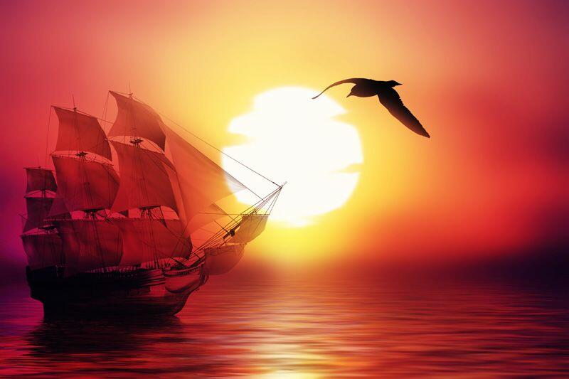 Паруса рдеют розой,