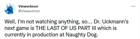 Пользователь твиттера ViewerAnon, неоднократно сообщавший информацию по фильмам и играм раньше официального анонса, заявил об идущей разработке The Last of Us Part III, которой руководит Нил Дракманн (геймдиректор первых двух частей).