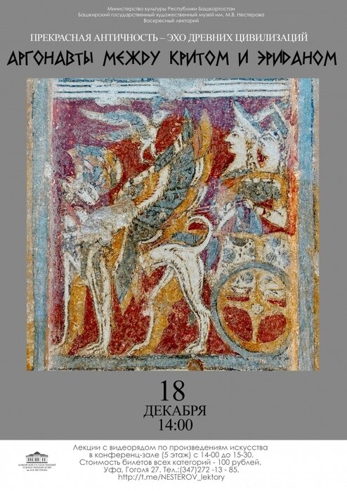 В Воскресном лектории Музея Нестерова продолжается цикл лекций, повествующих о культуре, мифологии, искусстве и музыке народов, обитавших в древности на территории греческой Ойкумены. Разговор о путешествиях продолжается - поиск Гипербореи сменяется рассказами о приключениях аргонавтов и странностях их маршрута - Колхида, Рифеи и река Эридан у подножия гор и вдруг - Крит... Планировали ли они повидать Миноса Критского и его пасынка-минотавра?