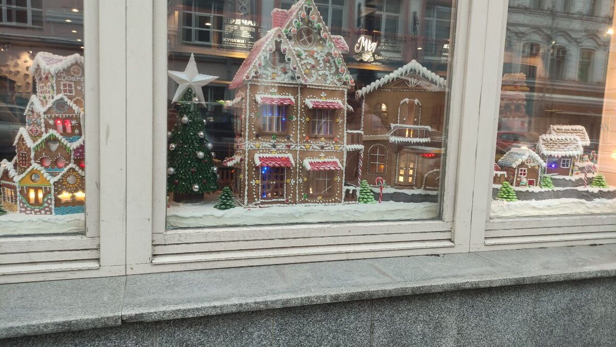 Страна пряничных домиков встретила нас ажиотажем посетителей, сделать фото внутри не задевая чьего-либо личного пространства было решительно невозможно, не говоря уже о возможности незаметно откусить пол елки с витрины. Было принято решение если и брать что-либо, то только с собой.