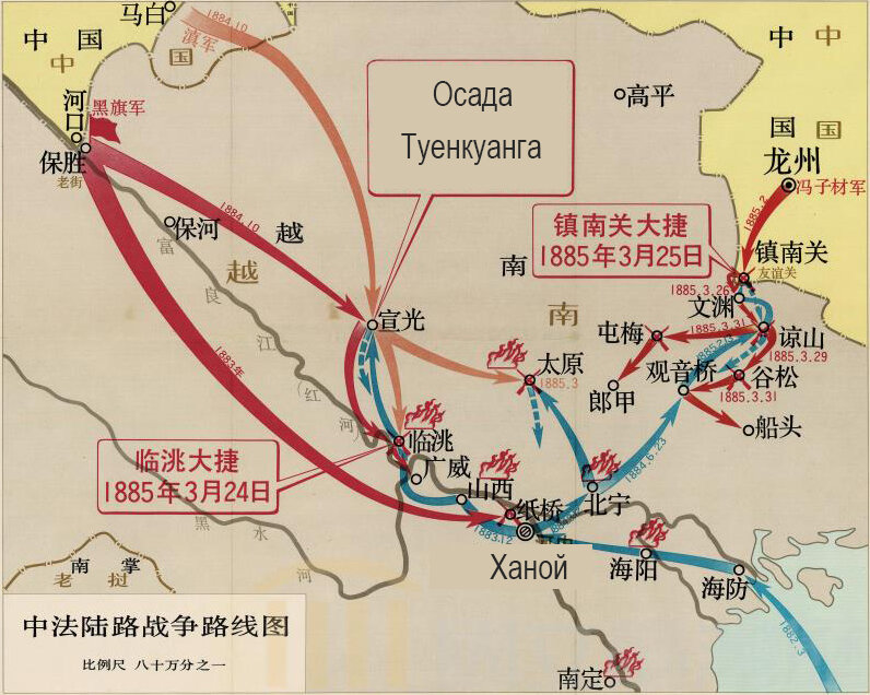 Пока де Негрие вел тяжелые бои с Гуансийской армией и в конце концов заставил ее отказаться от наступления на юг Вьетнама, перейдя к обороне, Юньнаньская армия в союзе с «Черными флагами» Лю Юнфу продвигалась западнее, по Мандаринской дороге. Самым дальним от Ханоя (сто километров по прямой) французским аванпостом на этом направлении был Туенкуанг – крохотная цитадель с деревней.