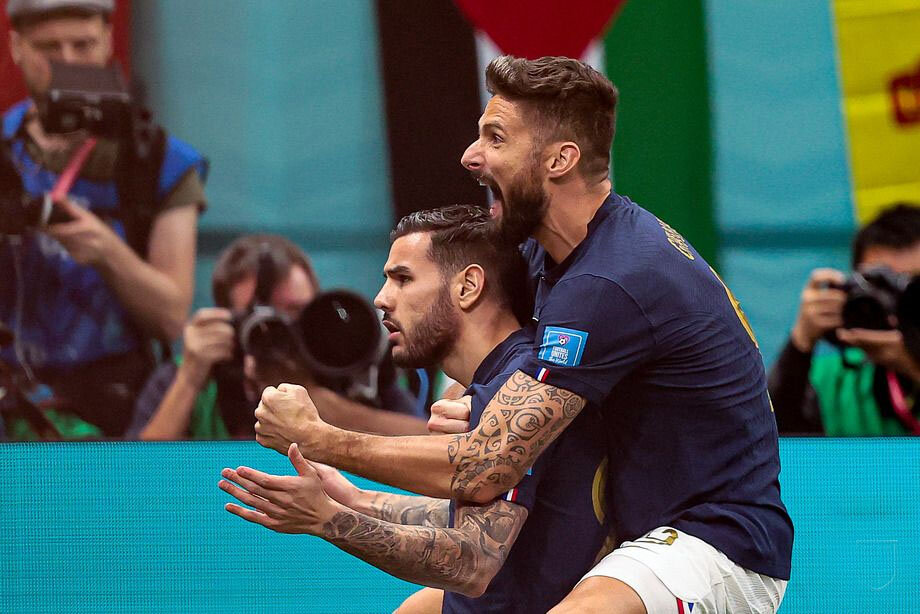 Владение мячом: 39% : 61% Французы быстро вышли вперёд благодаря быстрому голу, который случился на пятой минуте. После попытки удара Килиана Мбаппе мяч рикошетом полетел в сторону защитника «трёхцветных» Тео Эрнандеса, который в акробатическом прыжке ударил по летящему мячу, и тот влетел в ближний угол – 1:0. В последующие до перерыва минуты команды обменялись острыми атаками и ударили по разу в каркас ворот. Во втором тайме марокканцы много владели мячом и пытались взломать оборону французской сборной, но та мастерски отражала все атаки. В конце концов французы сумели воспользоваться одной из