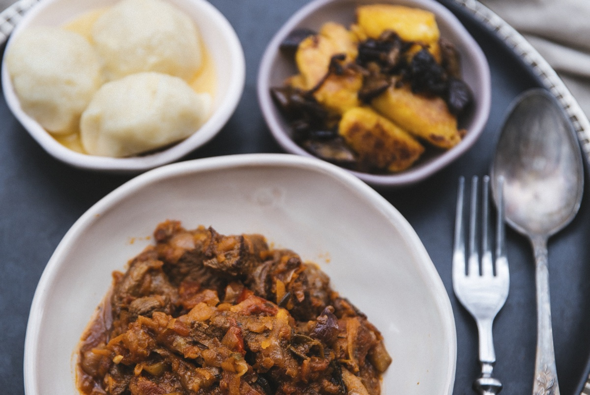 Острый гуляш из говядины со сливами